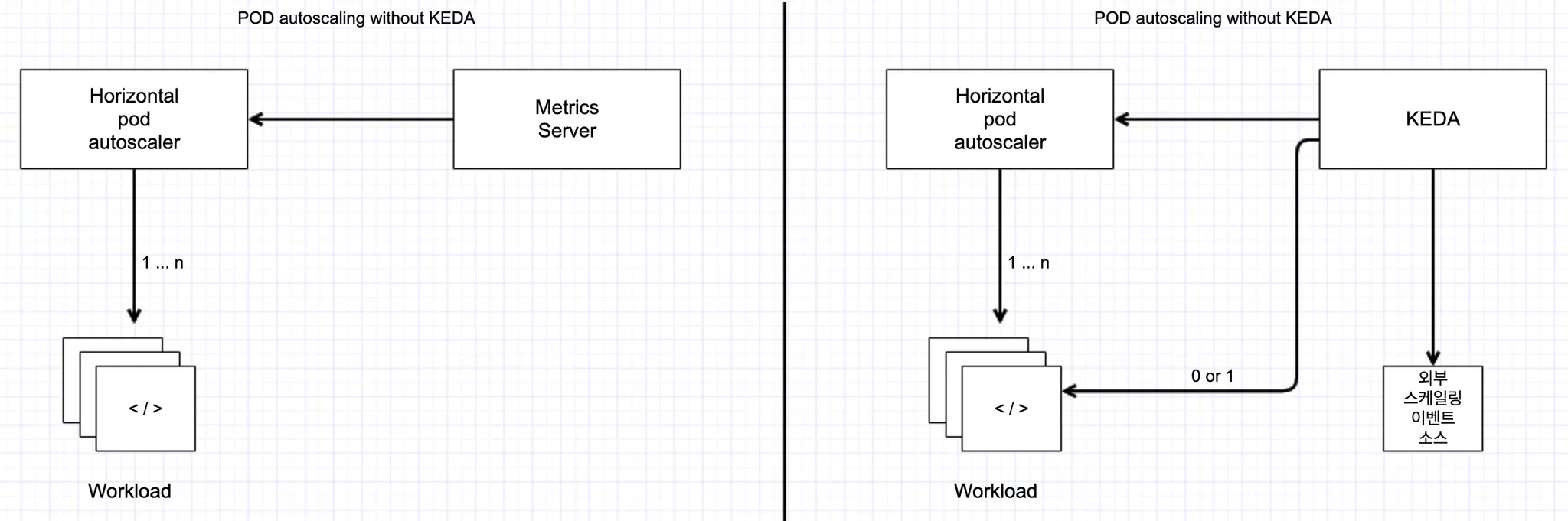 - 외부 이벤트 소스(메시지 큐, 스트림 등)를 스케일링 기준으로 삼기 복잡합니다.