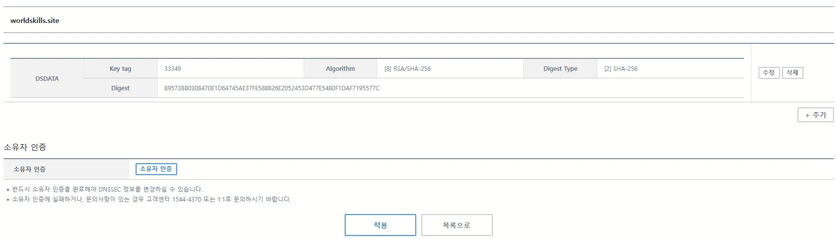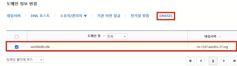 DNSSEC을 선택해주고 도메인을 선택해줍니다.