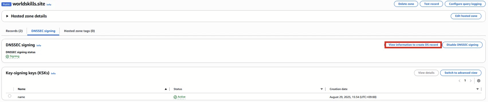 이제 마지막으로 DS레코드를 생성해야합니다. 아래의 사진처럼 View DS record를 선택해 정보를 확인해줍니다.