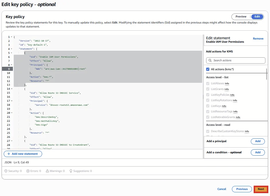 "Sid": "Allow Route 53 DNSSEC to CreateGrant",